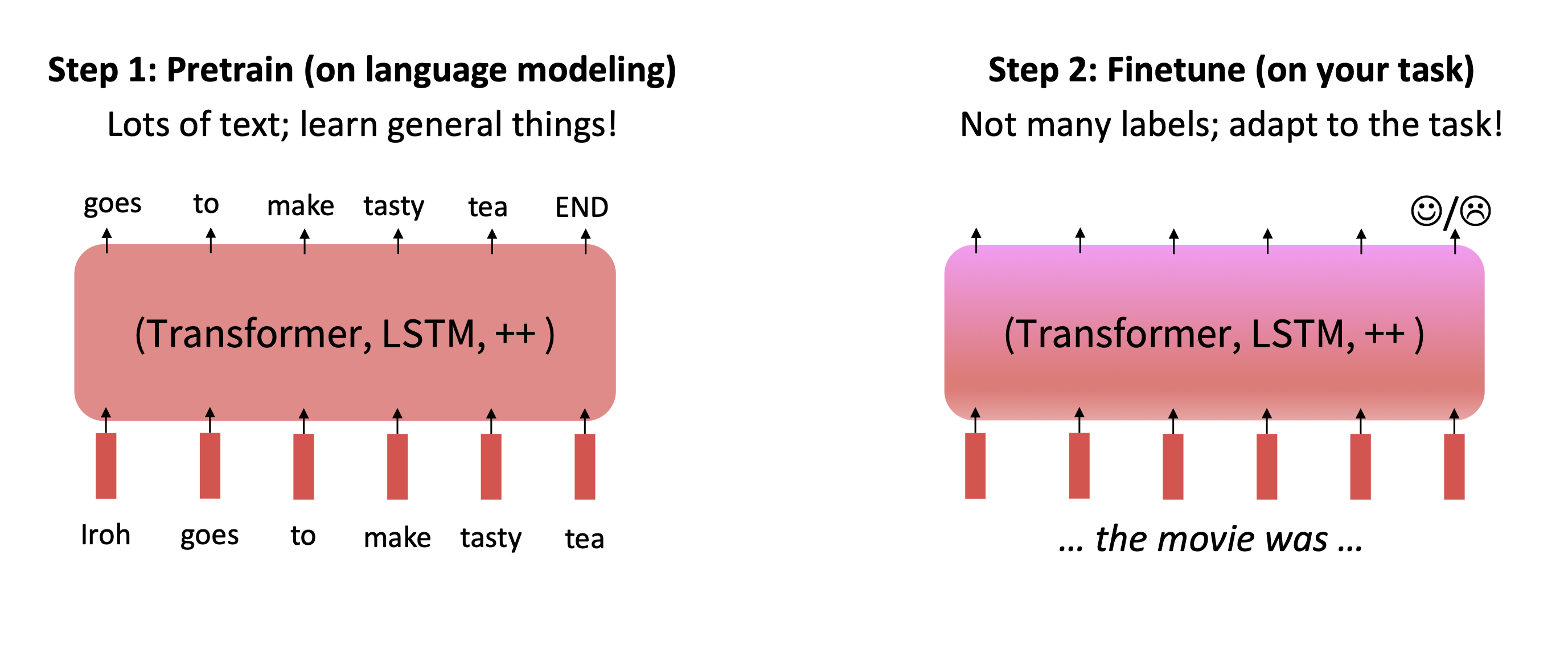 과거에는 단어 임베딩만 사전학습했지만, 이제는 모델의 거의 모든 파라미터가 사전학습으로 초기화된다.