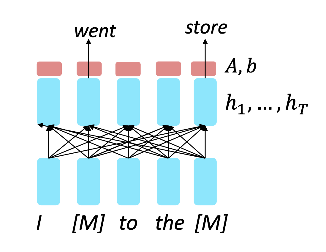 사전학습의 핵심 아이디어는 'masked language modeling', 즉 가려진 단어의 복원 이다.